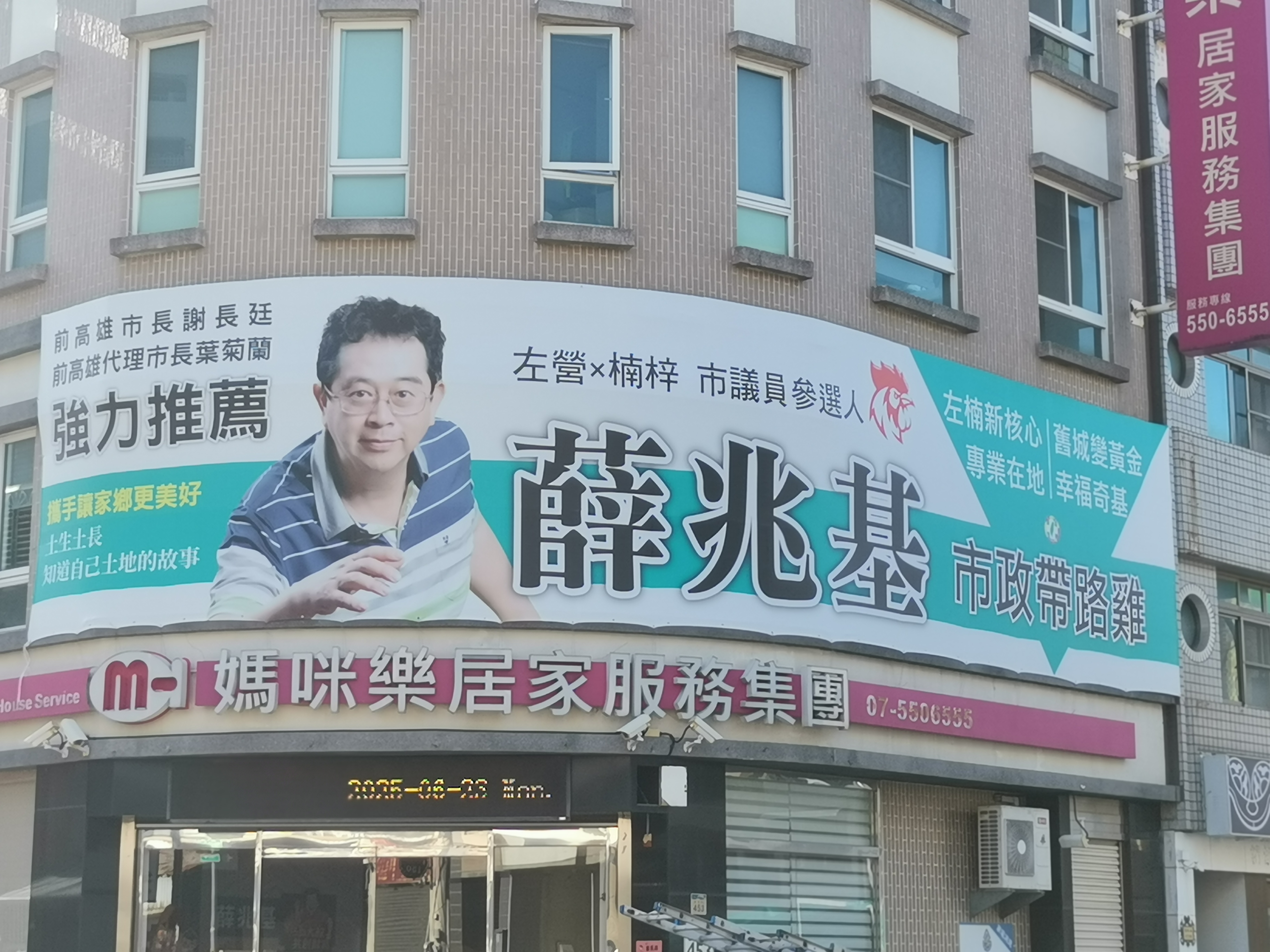 薛兆基競選辦公室外視覺帆布廣告。(圖/薛兆基辦公室提供)