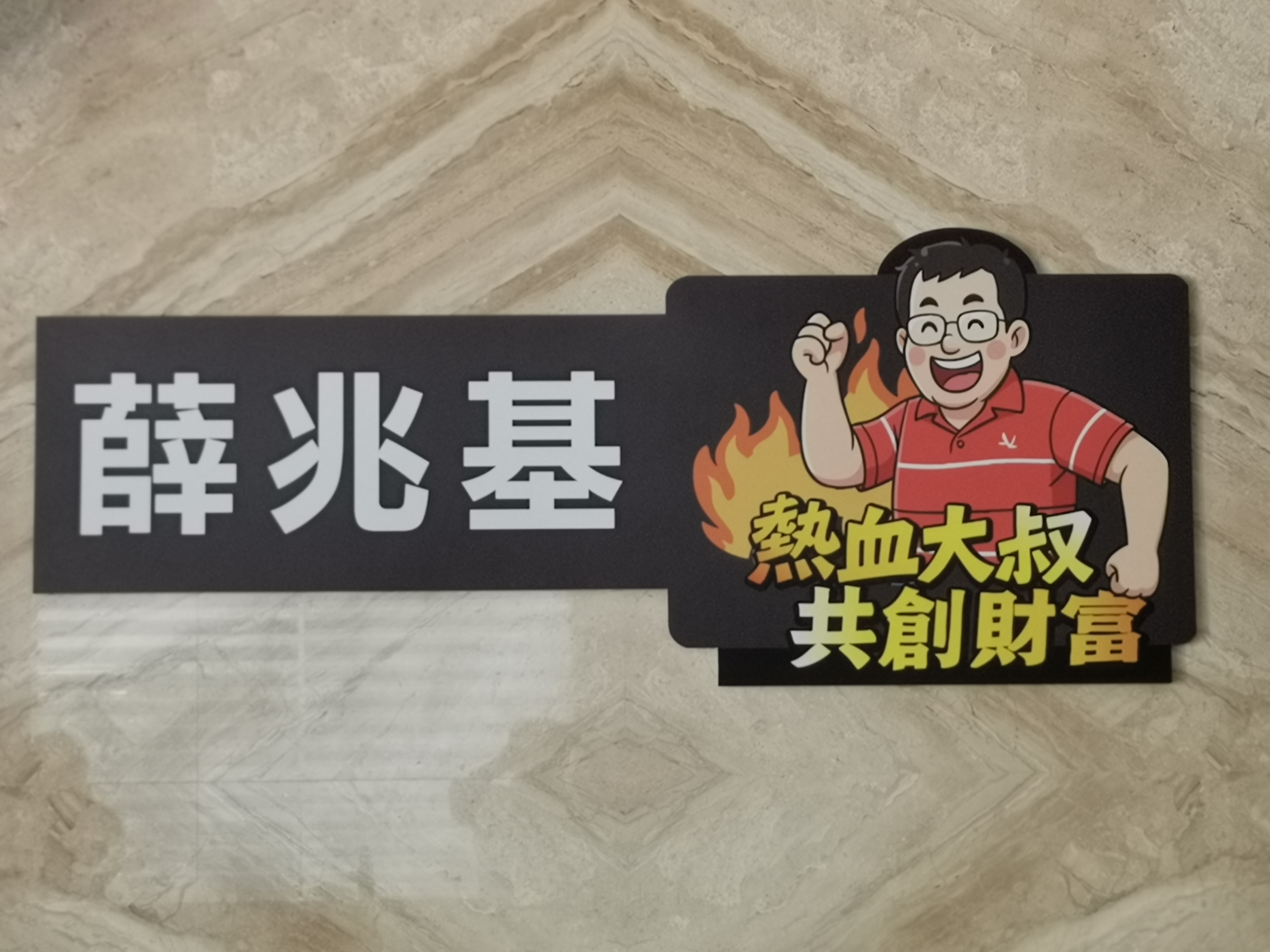 民進黨高雄市左楠區市議員參選人薛兆基的「熱血大叔」招牌。(圖/薛兆基辦公室提供)