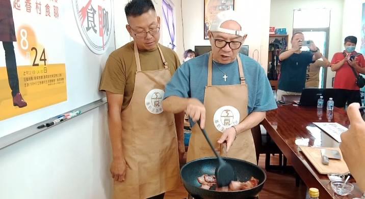 【記者崔金雄高雄報導】鳳山黃埔新村SOHO工房眷村生活體驗館,第二季「眷村食聊」第一場食聊來賓邀請著名美食作家吳恩文,來自左營勵志新村的他,從小跟著父母在廚房忙進忙出,近年經營「吳恩文的快樂廚房」,分享許多美食料理與小撇步,8月24日在黃埔新村東五巷黃埔客廳公開秀廚藝,端出蒜苗炒臘肉及蒜泥白肉及多道眷村料理,與三五好友閒話家常。