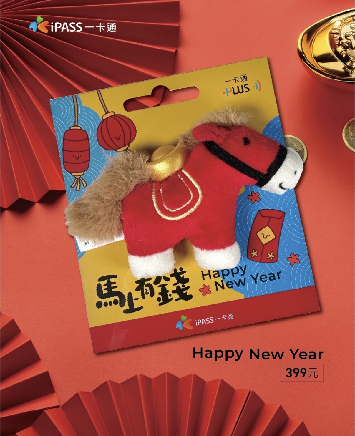 迎接馬年到來,想要財運、好運「馬」上就來嗎?一卡通公司搶搭馬年話題特別推出充滿濃濃年味的創意票卡,新春《馬上有錢》及《大吉大利》絨毛一卡通兩款,手掌大小外型超萌又喜氣,不僅要攻佔通勤族的感應機台,更希望成今年最火紅的走春時尚標配。即日起將於7-ELEVEN OPENPOINT開始預購,2月4日起現貨可於高雄捷運指定車站買到。