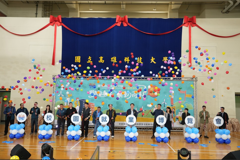國立高雄科技大學2026校園就業博覽會開幕儀式於第一校區盛大舉行,校方主管與企業代表共同揭開序幕,吸引大批學生踴躍參與。