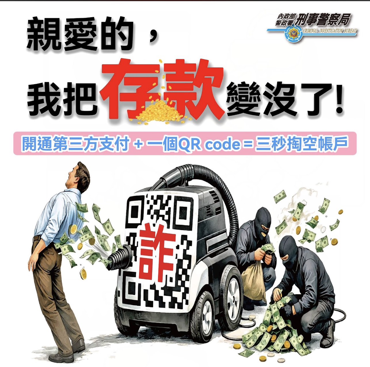 隨後出現假客服,要求開啟視訊螢幕共享並掃描QR Code操作網路銀行,短短3秒鐘時間,帳戶內8萬元存款瞬間被轉走!