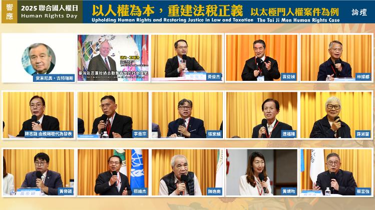 【記者洪大城/台北報導】《世界人權宣言》通過至今70多年,回顧宣言開宗明義提到:「人人生而自由,在尊嚴與權利上一律平等。他們賦有理性與良心,應以兄弟關係的精神相對待。」而當今全球遭遇環境失衡、戰爭衝突、貧富差距擴大等問題,實踐人權準則受到深刻挑戰。2025年12月10日聯合國人權日,由聯合國 NGO世界公民總會、聯合國NGO世界公民總會台灣總會、太極門氣功養生學會等近30個民團,於臺灣大學應用力學館國際會議廳,舉辦「以人權為本,重建法稅正義-以太極門人權案件為例」研討會,假案真辦的太極門信仰人權迫害,延宕近30年,引發國內外學者批評為行政權凌駕司法、侵害宗教信仰自由之指標性案例,成為國際關注焦點。