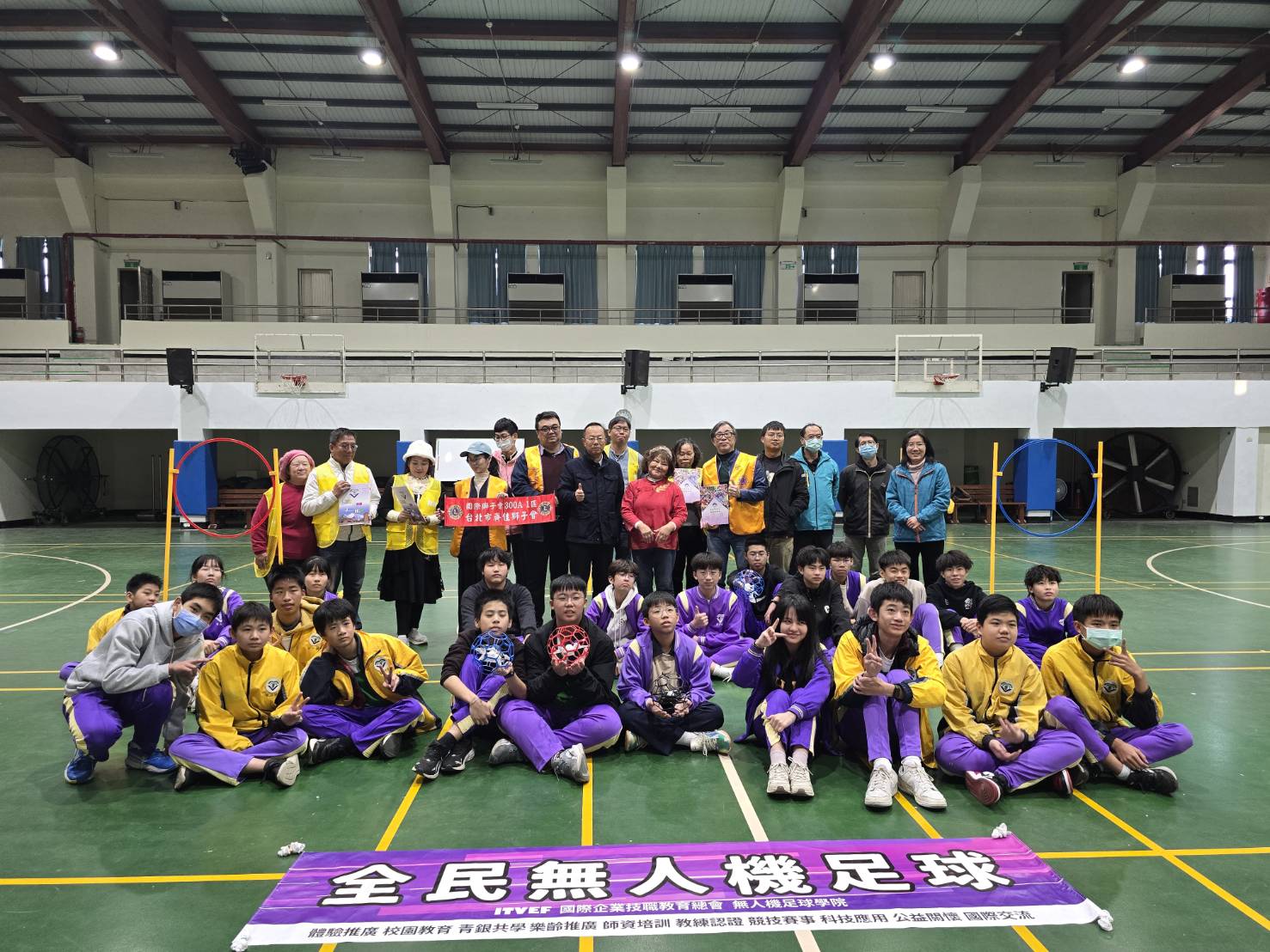 全民無人機足球體驗活動,由國際企業技職教育總會無人機足球學院主辦、台市齊佳獅子會協辦,日前於金門縣金湖國中舉行,活動邀請校內學生參與,並由校長莊錦智率領多位教師一同加入體驗行列,透過科技運動的實作學習,深化學生對無人機應用與團隊策略的理解。