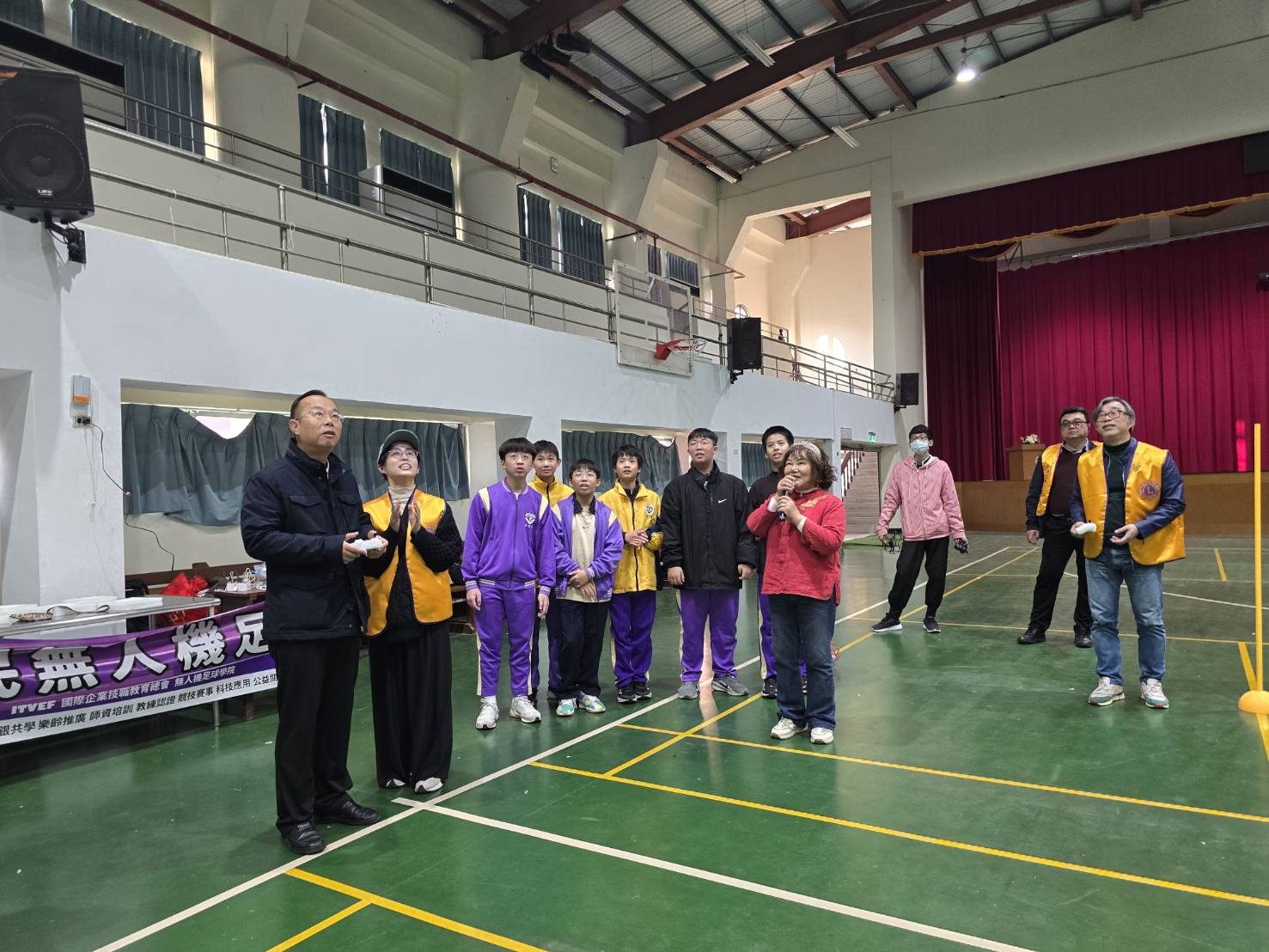 活動過程中,校長莊錦智及多位教師亦同步參與體驗與觀摩,從教育角度了解無人機足球在課程融入、社團發展及跨領域學習上的應用潛力。校長表示,無人機足球不僅是科技操作,更結合邏輯思考、空間概念與溝通協調能力,對國中階段學生未來學習發展具有高度價值。
