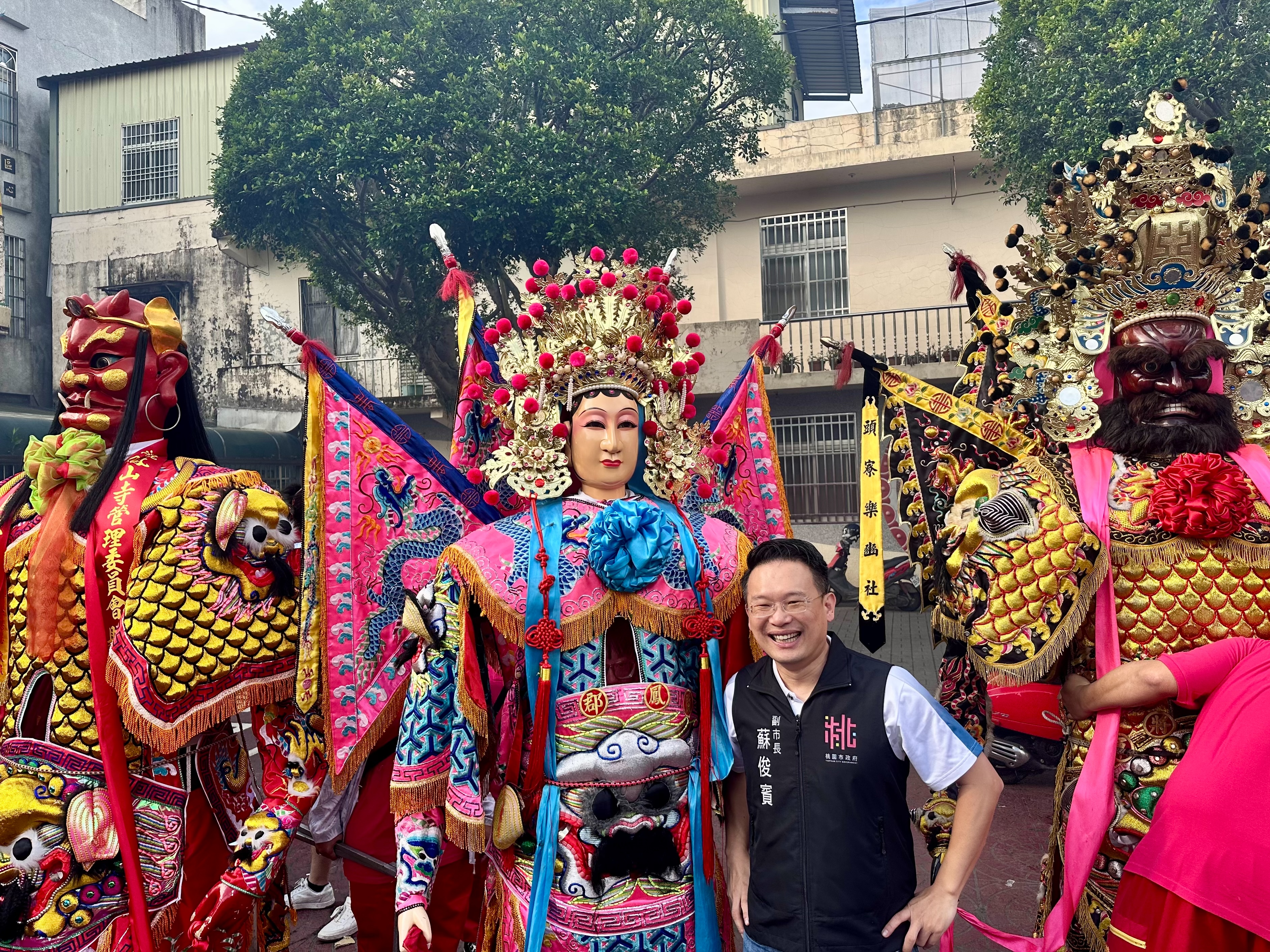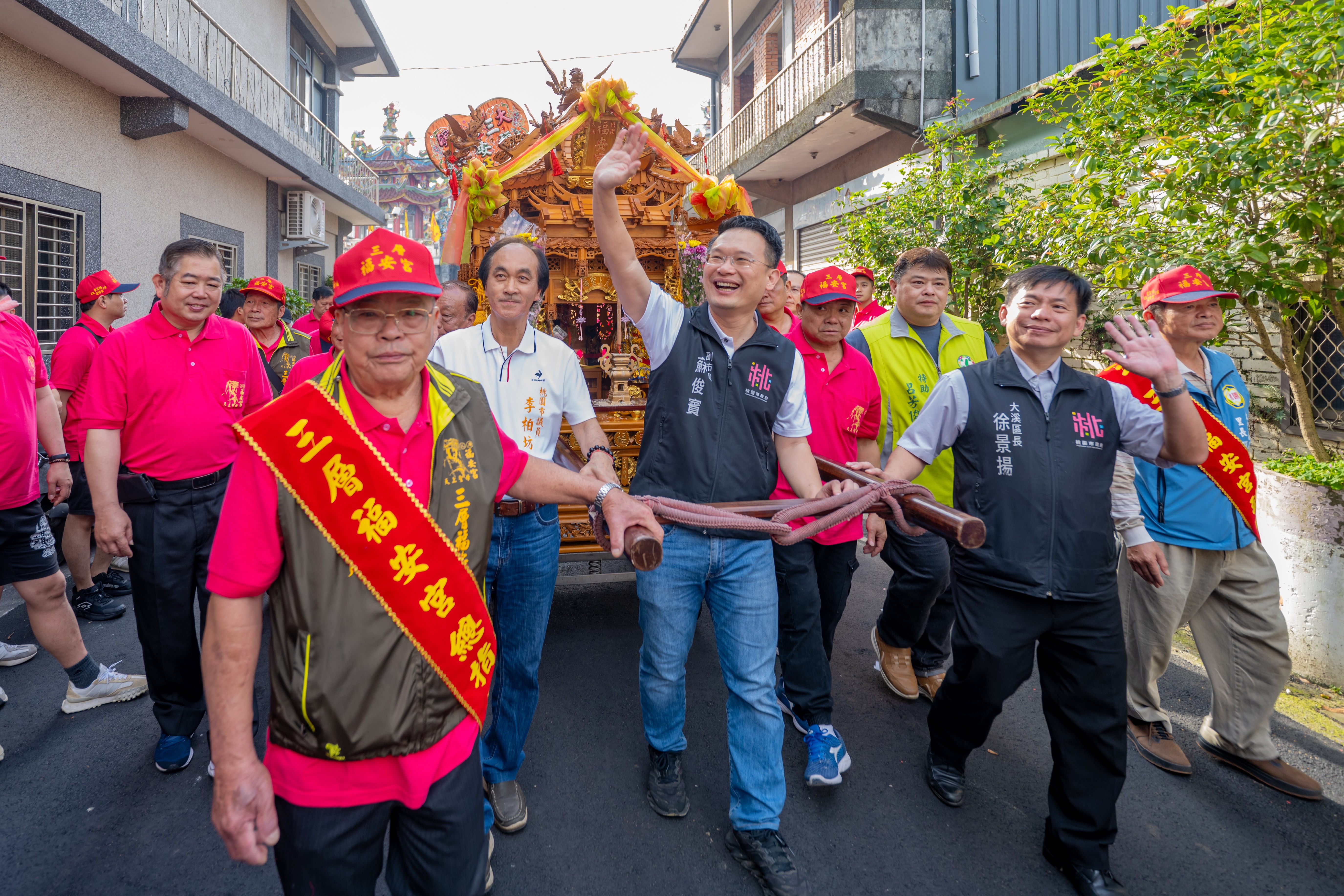 桃園市副市長蘇俊賓今(19)日上午前往大溪區,出席「114年大三層媽祖文化節活動」。今日福安宮舉辦天上聖母壽誕遶境祈福活動,在地三大社頭前導老媽鑾駕,蘇俊賓也一同扶鸞出巡三層庄。蘇俊賓表示,大溪社頭文化傳承百年,是在地重要的文化資源,市府將持續與各宮廟及社頭合作,鼓勵年輕人參與這世代文化傳承,讓三層老媽祖信仰代代相傳。