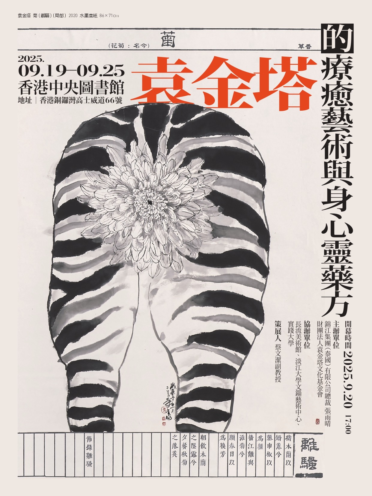 展覽現場以五行為節奏,透過詩句、香氣與水墨、紙漿裝置營造出獨特的本草能量場,觀者參與其中展開一場靜謐的自我修煉與情緒轉化之旅。本展不僅回應當代社會對情緒療癒(網路成癮、社交焦慮、養貓療癒、公主病、媽寶…)與心靈安頓的深層渴望,更以藝術形式轉譯東方古典智慧,為觀者獻上一帖詩與藥交織的藝術與心靈處方。誠邀各界蒞臨感受來自草木深處的視覺、觸覺、嗅覺療癒情境。