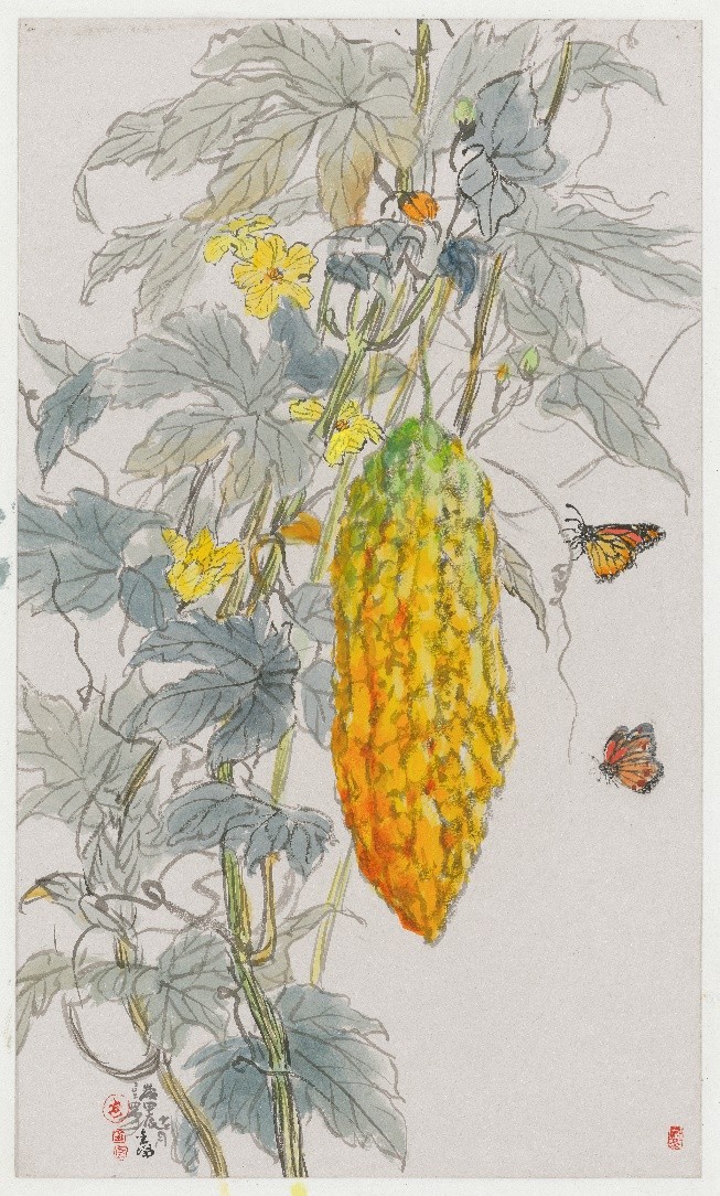 ▲圖/苦瓜1,水墨設色、灰卡紙,2024.12,57x38.5cm。(圖/袁金塔提供)