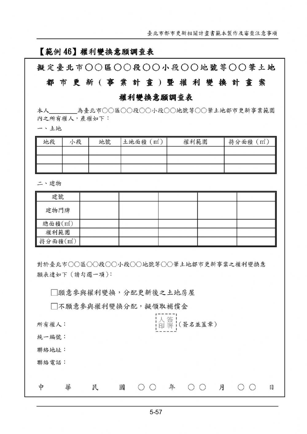 權利變換意願調查表