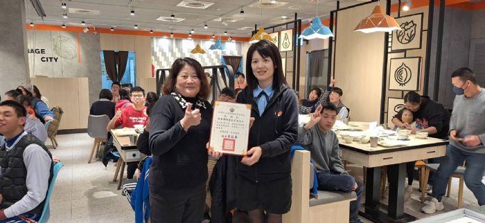 桃特有您真好~感謝錢都日式涮涮鍋-桃園中山店所有店員及總部的行銷團隊熱心貼心招待,讓即將畢業的國三、高三學生藉此感恩餐會活動,感謝三年來不辭辛勞、默默付出的老師們也讓學生們能享受台灣的火鍋美食。 特教學生「百人吃鍋」活動,今年是第二次帶學生現場吃火鍋。今天特別出動了折疊式電動爬梯椅,讓輪椅生也能上二樓和同學一起吃火鍋。一般人習以為常的用餐型態-火鍋,對特教學生而言是極具挑戰性的。諸如:食物是否煮熟、煮食鍋具的安全和火侯的掌控、自助式吧檯拿取自己需要的醬料、飲品、冰淇淋等等。雖然在課堂上,老師們不斷的重複教導與練習,但現場的手忙腳亂、不知所措還是老師們擔心的,尤其對能力較弱甚至行動不方便的學生而言,這些動作皆須老師家長在旁協助。然而,特教的精神-有教無類及聯合國永續發展SDGs的優質教育-接受良好的教育,再再彰顯出特教老師的專業性與無私的付出,也深深感受到各界對特教學生的照顧與愛戴。 特別感謝錢都日式涮涮鍋中山店的熱情招待也感謝總部吳金純特助的用心安排讓特教學生能享受美味火鍋,肉盤量多又新鮮,餐後還有摸彩活動,獎品包羅萬象,人人有獎皆大歡喜,謝謝您們不僅給予學生一個美好的用餐體驗,更能夠讓我們感受到社會的溫暖和關愛。