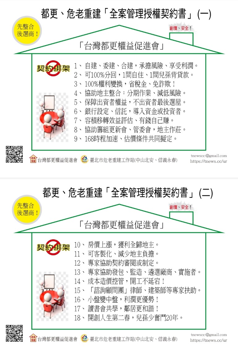 如果有穩賺不賠的生意,花30萬就可以打造出全新、價值達3000萬的新成屋,身為地主的您,願不願意參與?重點是這30萬,還不必從你口袋掏出來,100%由銀行幫你出,連利息都幫你付,這麼好康的福利,願意參與嗎? 都巿更新的主控權,過去都由建商發球,從遴選標的物、投資前期資金、提供分配比率、契約綁定地主等程序,一步步打造金磚,換取高額利潤,縱使每20個案子才有1案有機會成功,仍有投資商趨之若騖,這背後真有龐大的利益,有錢能使鬼推磨嗎? 答案是肯定的! 重點是真的能以小搏大,創造出高達100倍的價值?且風險可控嗎? 如果是建商的投資模式,風險恐怕無限大,因為其中的時間成本,人事成本,將是資產活化的大利空,即便建商先買了一戶、二戶卡位,等都更、掌控主導權,因為多數土地和建物都是其它地主私有,除非能100%以合建契約綁定地主,否則即便99%,只要有一戶不同意,縱使在都更條例修法後,優勢都不會站在建商這邊,因為一邊是居住正義,一邊只是投資利益,永遠不對等,官員的拆除同意章,就是很難為建商利益背書,走法院程序申請強拆,又曠日費時! 更嚴重的是,就算分回比例中建商可以拿4成,他要以4成的新成屋價值去貸款取得100%新成屋的建築成本,在工資上漲、成本上漲的年代,勢必要將建商壓的喘不過氣,銀行對於建商擔任實施者的個案,一般給與建商的建築融資,只會落在6成到7成,原因很簡單,因為在銀行看來,由外來者主導都更,是一件很難的事情,除非建商口袋很深,至少拿的出重建總成本的4成可當作自有資金,否則銀行並不相信建商有能力完成,畢竟當每坪造價成本上漲30%時,建商承擔的其實是每坪上漲75%。 30%÷40%=75% 如果每坪成本漲了3萬元,建商要以可領回的4成新成屋的總價值來籌措資金蓋出100%的新成屋,等於要從屬於建商的預期資產中,每坪要能向銀行多借出7.5萬元才夠支應房價上漲,這時候建商還能不棄單轉讓嗎? 3萬÷40%=7.5萬 而這恰恰正是台北市過去危老核准的五百多件當中,只有四分之一到三分之一有能力繼續不間斷蓋下去的原因,因為越來越多的地主並不願意建商拿地主的土地去借土地融資款、建築融資款,讓建商零成本蓋屋、謀取暴利。 甚至在都更整合好、取得建築執照、成功拆除老房屋,也幾乎完銷的市場當中,還發現一個奇怪的現象,居然有建商主導,SRC鋼骨鋼筋混凝土25層大樓的都更案,建造期間,居然可以長達8年,如果真的要讓預售屋的買家空等8年,期間還要不斷的出資,幫建商補充銀彈,還有期待他不會蓋不下去而成為爛尾樓,了解真相的你,真的還要買預售屋嗎!這不是拿磚頭砸自己的腳嗎?如果預售屋的買家,都是抱著買股票的心態,認為8年後它一定大漲,老屋的地主們,這麼好賺,為什麼不自己賺! 但如果實施者不是外人,而是都巿更新會,在權衡上,居住正義的聲量就會被放大,因為是由社區的多數地主共同為了改善居住品質,自發性的舉動,縱使也是利之所趨,但本質上與開發商的投資行為全然不同,更多了幾分正當性,符合都巿更新的實質意義,且審議會在審理時,不論共同負擔提列高或低,最終利潤都會落入地主的口袋,相對審起來較無壓力,程序勢必更快;如果有阻力,有時間成本,地主仍然可以繼續住,要共好或共老,成不成都不會有權利損失,更不會形成擔任仲裁者官員的壓力和負擔。 同樣的道理,如果成本上漲,難道更新會就不會因為籌不出款項而蓋不下去嗎? 不會,因為對銀行而言,更新會就是地主,地主就是更新會的當然成員,不管是借錢給更新會,或是借錢給地主,其實通通都是同一個道理,就是借錢給地主的概念,過去多少建案倒閉之後,只要換個負責人、換個公司名,又可以另起爐灶,但是地主多半都是自然人,逃也逃不了,何況地主透過更新會所分配到的若只有6成,最終放在更新會口袋用以支應成本的那4成,如果有盈餘也會分回給地主。 當原本的都更成本每坪25萬元,成本上漲30%,來到每坪32.5萬元時,等於成本1坪多了7.5萬元,但相對的,新成屋價格也會上漲,可能從一坪100萬元,漲到110萬元,對銀行而言,因為可以依新成屋價值的5成到7成借錢給更新會,所以即便都更成本上漲,往往也還追不上上漲的房價,銀行能不安心嗎?這也是過去更新會擔任實施者,在提列共同負擔成本時,早期都不會提列太高的風險管理費,但現在還是先編列進去,銀行借給更新會的資金才會夠用,以防建築成本突然大漲,否則銀行還要再多做一個增補的程序,會比較麻煩。也因為如此,所以透過銀行協助的更新會,在許多銀行的經驗值中,從未聽過有蓋不下去的! 如果是更新會主導,資金充沛,地主們都等著搬進新房子住,自然不可能放任營造廠一拖就是8年,那真的太誇張了!如果是依照預鑄工法的進度,保守估計,14~20天就一層樓,蓋25層樓的房子不必2年,主結構就蓋好了,3年後入住,只是剛好! 除了建商和更新會,在重建市場上,還有另一種人特別在意風險是否可控:銀行! 因為不管是哪一種公辦或民辦都更案,最大的金主都是銀行,負責出錢的銀行,比建商和地主更怕被倒變呆帳。在出資前,雖然銀行也會規劃續建機制,避免爛尾樓,但實質上都會設法避免走入續建,因而銀行會在前端評估出資前,就先強化相關的安全保障機制,控制風險的關鍵,就是透過「信託」,經由產權及資金管理,配合工程查核及續建機制,促使興建順利,降低銀行融資風險。 換句話說,當建商或更新會可以取得銀行
