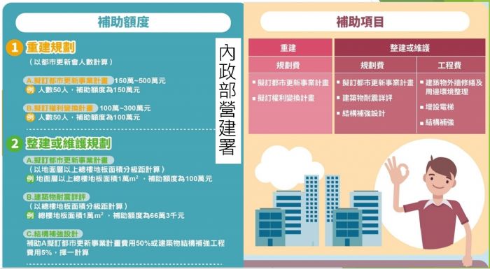 都市更新、更新會補助款 內政部800萬、台北市580萬元、新北市630萬、桃園市360萬